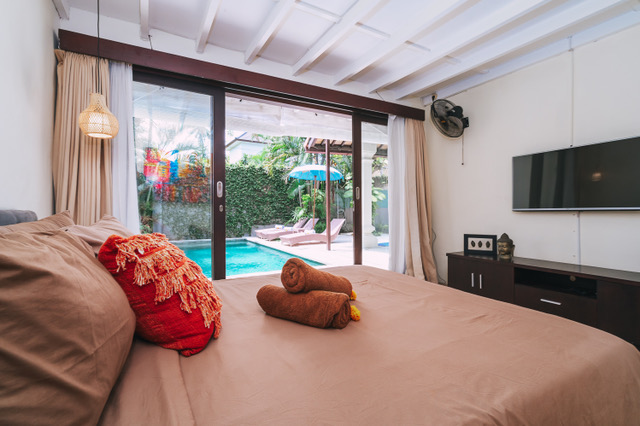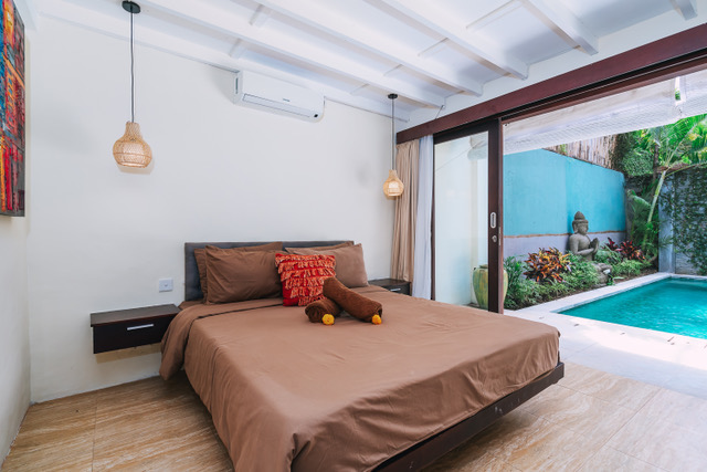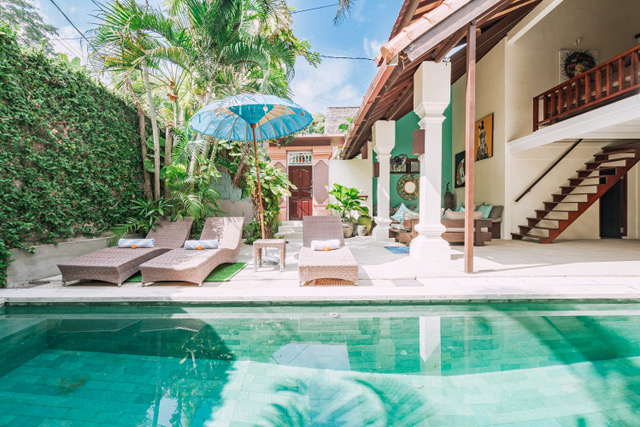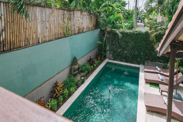 Set in the heart of Seminyak, in a quiet safe leafy estate of only 10 private villas - and yet only a 1 minute walk to the shopping, restaurants, bars and entertainment of Seminyak, and only a 5 minute walk to Bintang Supermarket.